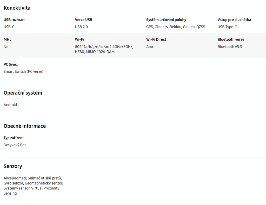 Dobíjecí konektor a datový je Micro USB-C