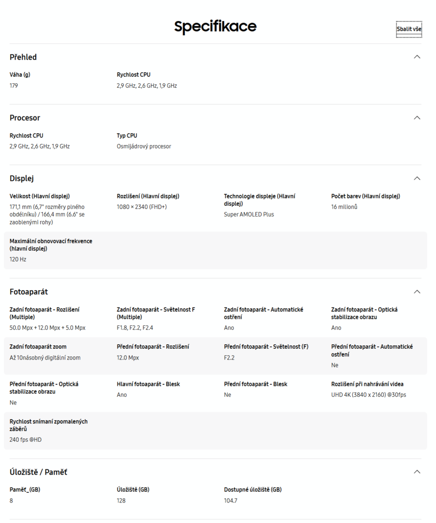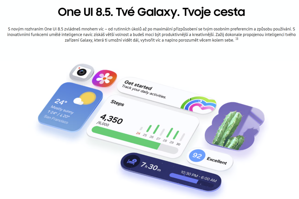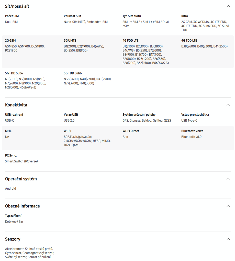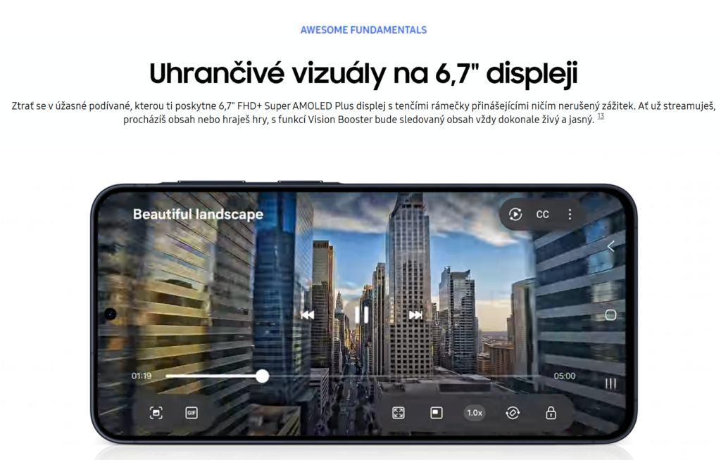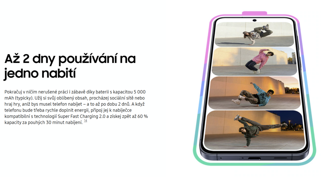 Android mobilní dotykový telefon – LCD 6,7″ AMOLED 2340 × 1080 (120Hz), úložiště: 128/256/512 GB, RAM: 8 GB/ 12GB, fotoaparát: 50Mpx (f/1,8) hlavní + 12Mpx širokoúhlý + 5Mpx makro + 12Mpx přední, CPU: Samsung Exynos 1680, NFC, USB-C, 5G, Dual SIM + eSIM, čtečka otisků, voděodolný dle IP68, rychlé nabíjení 45W, baterie 5000 mAh, model mobilu 2026, Android OS