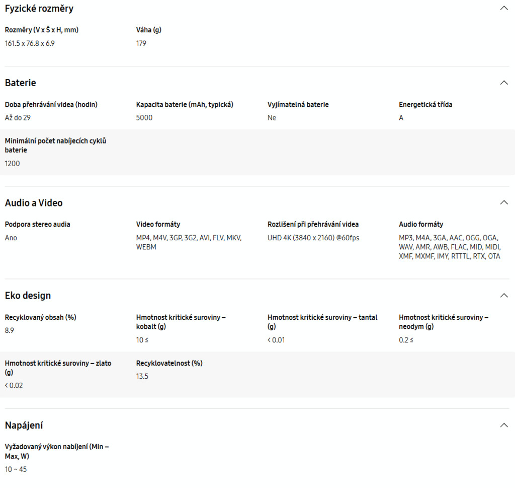 Doporučujeme dokoupit dobíječ Samsung 220V micro USB-C – 25W