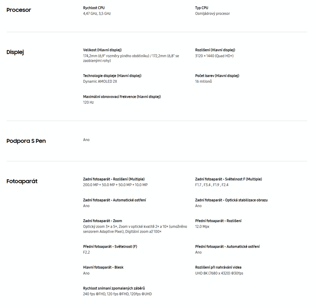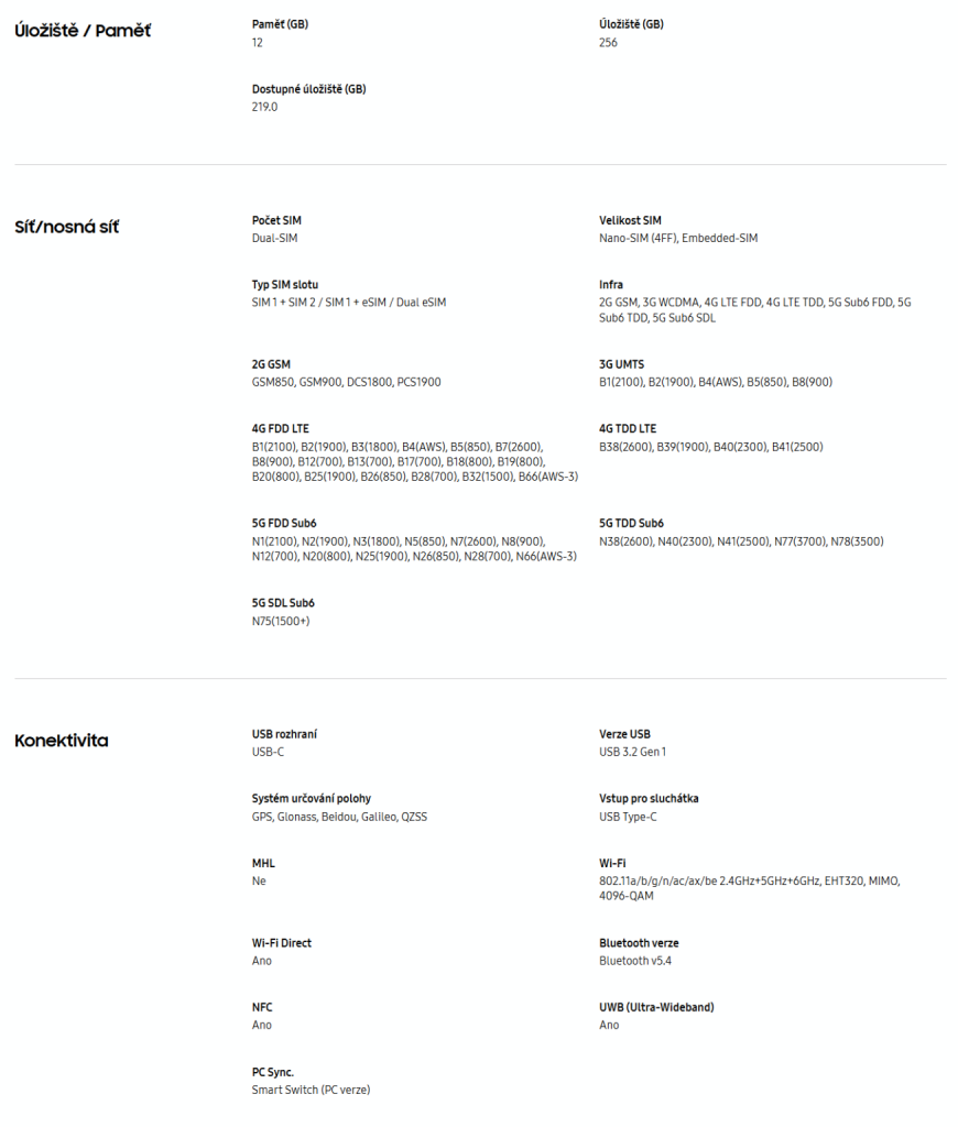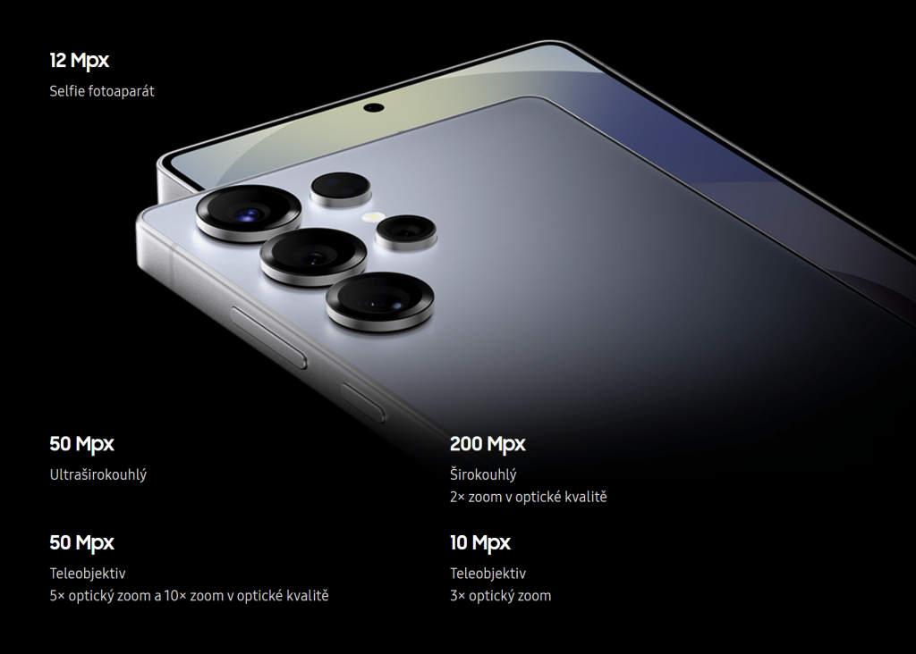 Samsung Dotykový Mobilní telefon – 6,9″ AMOLED 3120 × 1440 (120Hz), operační paměť 12 GB, vnitřní paměť 256GB /512GB/1TB, dual SIM, procesor Snapdragon 8 Elite for Galaxy, fotoaparát: 200Mpx (f/1,7) hlavní + 50Mpx širokoúhlý + 50Mpx teleobjektiv, přední kamera 12Mpx, čtečka otisků prstů, GPS, NFC, LTE, 5G, USB-C, voděodolný dle IP68, rychlé nabíjení 45W, bezdrátové nabíjení, baterie 5000 mAh, model 2025, Android 2025