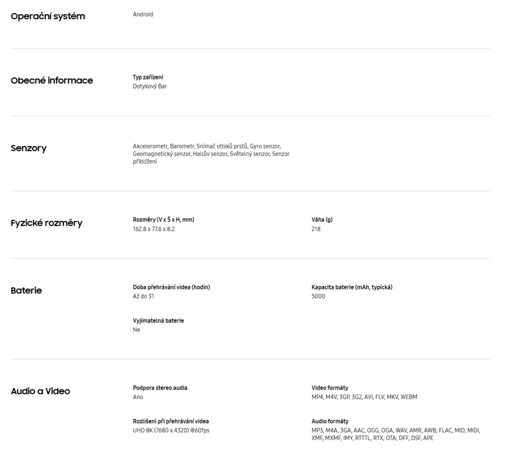 Doporučujeme dokoupit dobíječ Samsung 220V micro USB-C – 25W