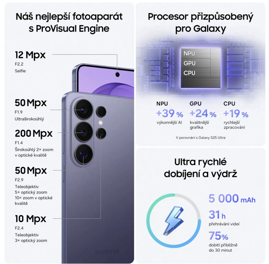 Samsung Galaxy S26 ULTRA 5G CZ Dual Sim CZ (S948) RAM 16GB/1TB á.47999,-Kč s DPH 21%