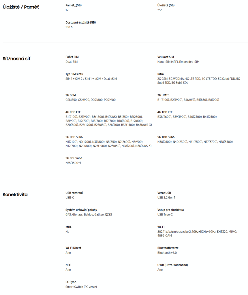 SIM slot dual SIM – oproti modelu Samsung S26 ULTRA již neumí číst paměťové karty !!!