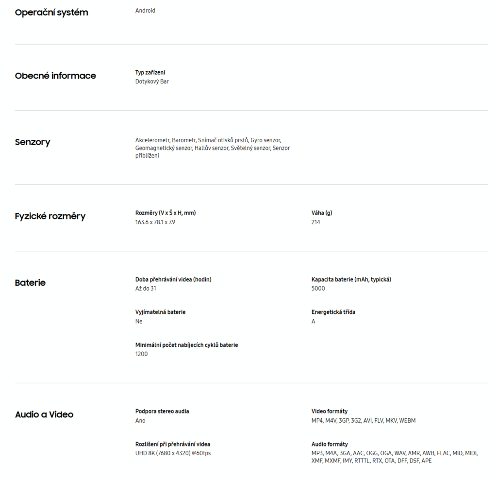 Doporučujeme dokoupit dobíječ Samsung 220V micro USB-C – 25W